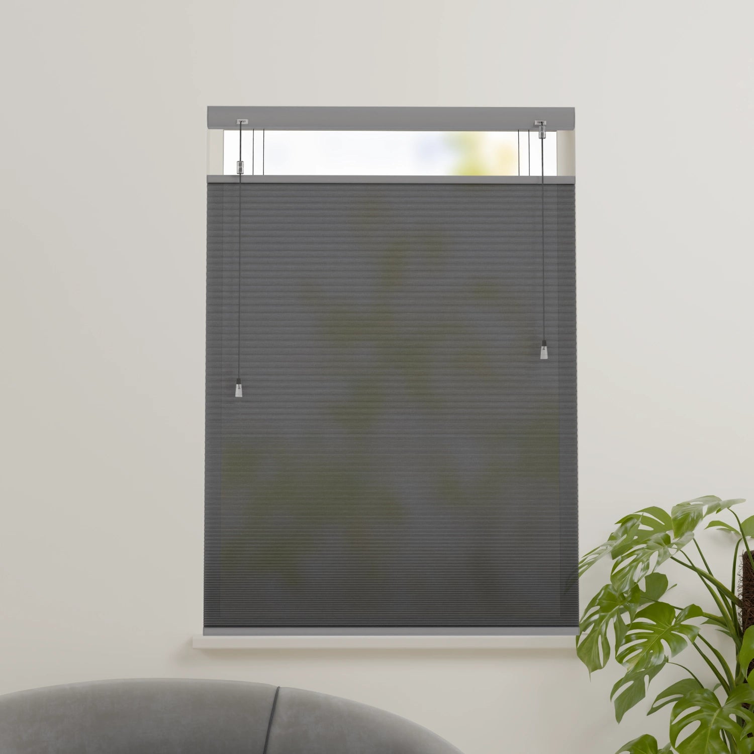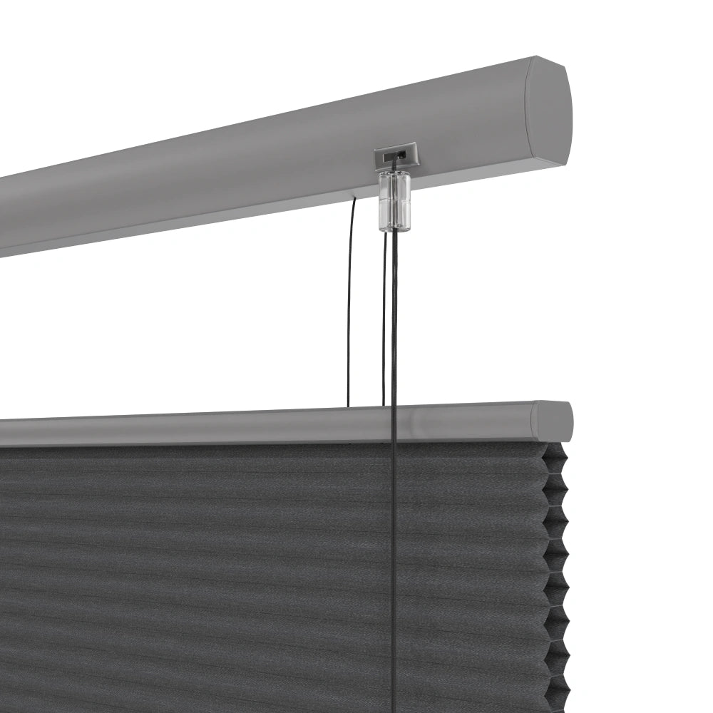 Onze plissé gordijnen kunnen worden besteldmet het gebruiksvriendelijke Top Down Bottom Up systeem. Dit unieke mechanisme biedt maximale controle over lichtinval en privacy. Aan de hand van de twee koordbedieningen kun je de onderkant omhoog trekken en de bovenkant omlaag, zodat je het licht precies daar binnenlaat waar jij het nodig hebt. Ideaal voor ramen met een prachtig uitzicht, terwijl je tegelijkertijd ongewenste inkijk voorkomt.